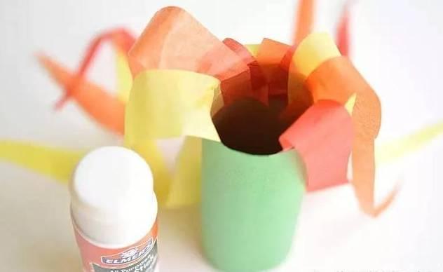 4.然后准备好皱纹纸和固体胶,将皱纹纸剪成长条