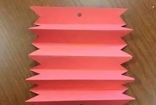1.将折纸对折折叠,然后在两边打一个孔