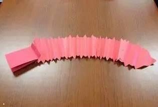 5.将两张折纸用图钉穿过孔连接在一起,然后再制作更多龙身的长形折纸,不断连接起来,如图