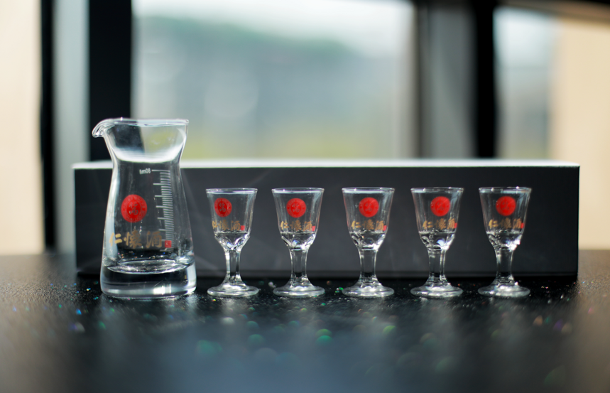 飞天茅台酒带有配套的茅台酒杯,这种小酒杯不仅可以聚拢酱酒的香气,还便于观察酒的颜色。